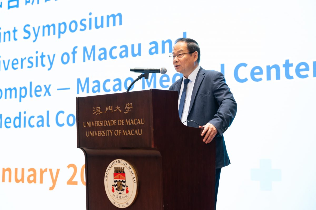 The Faculty of Health Sciences (FHS) of the University of Macau (UM) and the Islands Healthcare Complex – Macao Medical Center of Peking Union Medical College Hospital (Macao Union Medical Center) co-organised the Second Joint Symposium, which attracted more than 100 experts and scholars from medical institutions in Macao. During the event, the two parties reached a consensus on several future collaborative initiatives, including promoting the sharing of research and clinical data, expanding exchange mechanisms for students and clinical staff, and strengthening systematic cooperation in precision medicine as well as the diagnosis and treatment of major diseases.