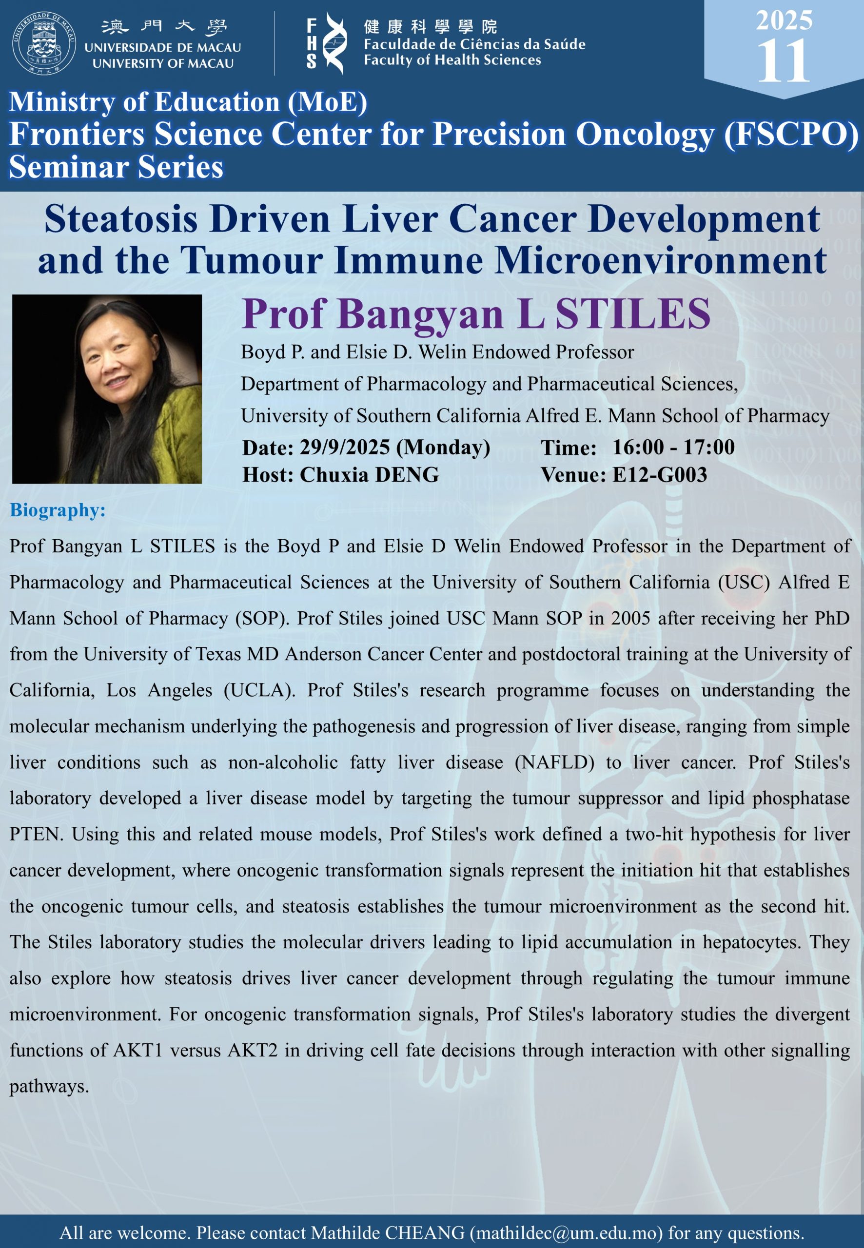 脂肪酶驅動的肝癌發展與腫瘤免疫微環境 – Prof Bangyan L. STILES